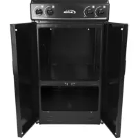 Incorpora quemadores con base en aluminio y tapas porcelanizadas, operados por válvulas de seguridad, y un sistema de combustión tipo venturi que distribuye el calor de forma uniforme. Su gabinete multiusos agrega funcionalidad y almacenamiento adicional sin ocupar más espacio.