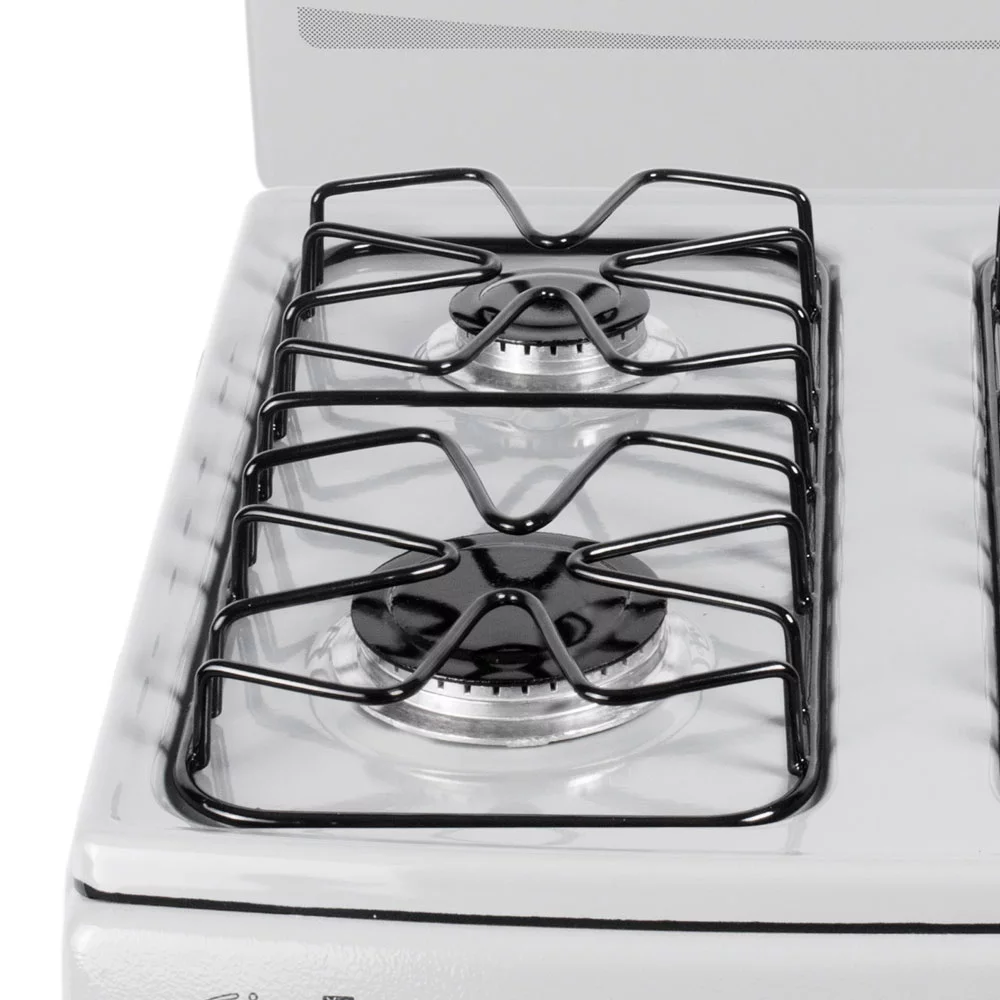 Equipada con 3 quemadores rápidos y 1 ultra rápido con base en aluminio, ideales para diversas técnicas culinarias. La mesa porcelanizada con sistema sellado antiderrames facilita la limpieza, mientras las parrillas en alambrón porcelanizado garantizan máxima durabilidad. El encendido manual ofrece control preciso de la llama.