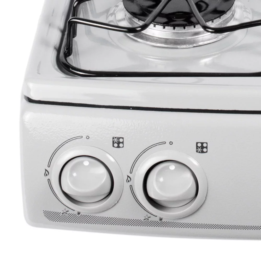 Con medidas ultracompactas (51 x 58 x 13.5 cm) y elegante color gris, se integra perfectamente en cualquier cocina. El sistema de combustión tipo venturi optimiza el consumo de gas natural, y las válvulas de seguridad con perillas ergonómicas aseguran operación protegida. Su diseño con torre añade un toque de sofisticación.