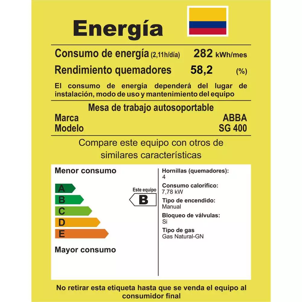 | Uso Recomendado | Estufa de sobremesa a gas natural, 4 puestos |
