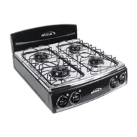 | Materiales | Mesa curva sellada en acero inoxidable 430, parrillas en alambrón porcelanizado, base de quemadores en lámina, tapas en acero porcelanizado |
