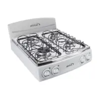 La mesa curva sellada con niveles antiderrame facilita la limpieza diaria, mientras que las dos parrillas dobles en alambrón porcelanizado brindan estabilidad para tus utensilios de cocina. Sus quemadores con base en aluminio y tapas de acero porcelanizado, junto a las válvulas de seguridad, garantizan una cocción segura y eficiente en cada uso.