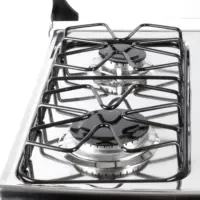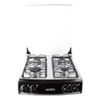 Destaca por su tapa en vidrio de seguridad que protege y añade un toque de distinción. Con medidas compactas (51 x 58 x 17.8 cm) y solo 9 kg de peso, se adapta perfectamente a espacios reducidos. El sistema de combustión tipo venturi optimiza el consumo de gas propano, y las válvulas de seguridad con perillas ergonómicas aseguran operación protegida.