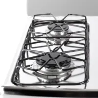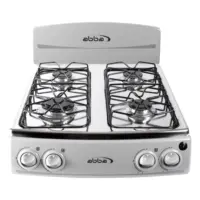 Materiales | Mesa curva en acero inoxidable 430, parrillas en alambrón porcelanizado, quemadores con base en aluminio y tapas en acero porcelanizado |