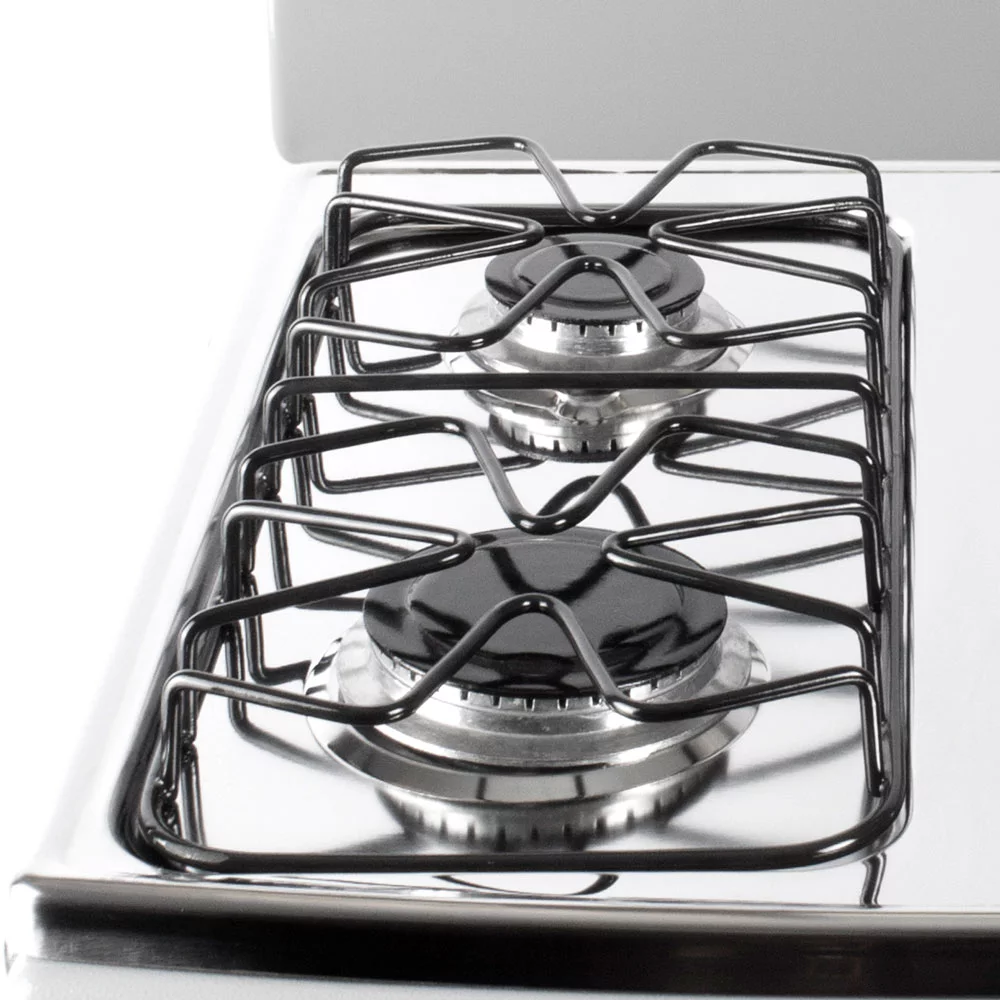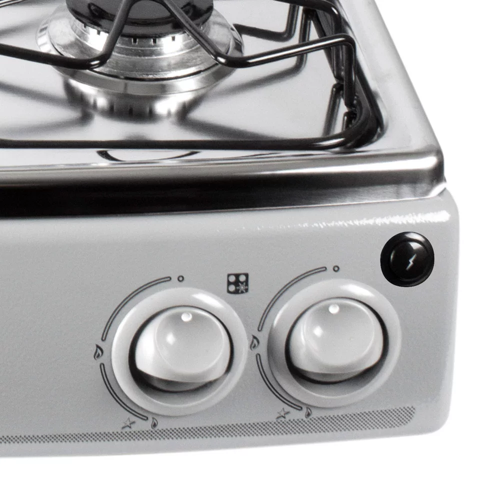 Con medidas ultracompactas (51 x 58 x 13.5 cm) y sofisticado color gris, se adapta perfectamente a cocinas modernas. El sistema de combustión tipo venturi optimiza el consumo de gas propano, y las válvulas de seguridad con perillas ergonómicas aseguran operación protegida. Su diseño con torre añade un toque de distinción.