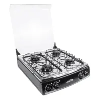 Equipada con 3 quemadores rápidos y 1 ultra rápido, adaptables a todo tipo de preparaciones. Su mesa curva en acero inoxidable 430 con sistema antiderrames facilita la limpieza, mientras que las parrillas en alambrón porcelanizado garantizan durabilidad y resistencia. El innovador encendido electrónico ofrece mayor comodidad y seguridad.