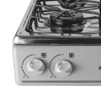 Cuenta con una mesa plana en acero inoxidable 430, sellada y con niveles antiderrame que facilitan la limpieza. Sus parrillas dobles en alambrón porcelanizado ofrecen estabilidad y durabilidad. Los quemadores en lámina están operados por válvulas de seguridad, y su sistema de combustión tipo venturi mejora la eficiencia del gas.