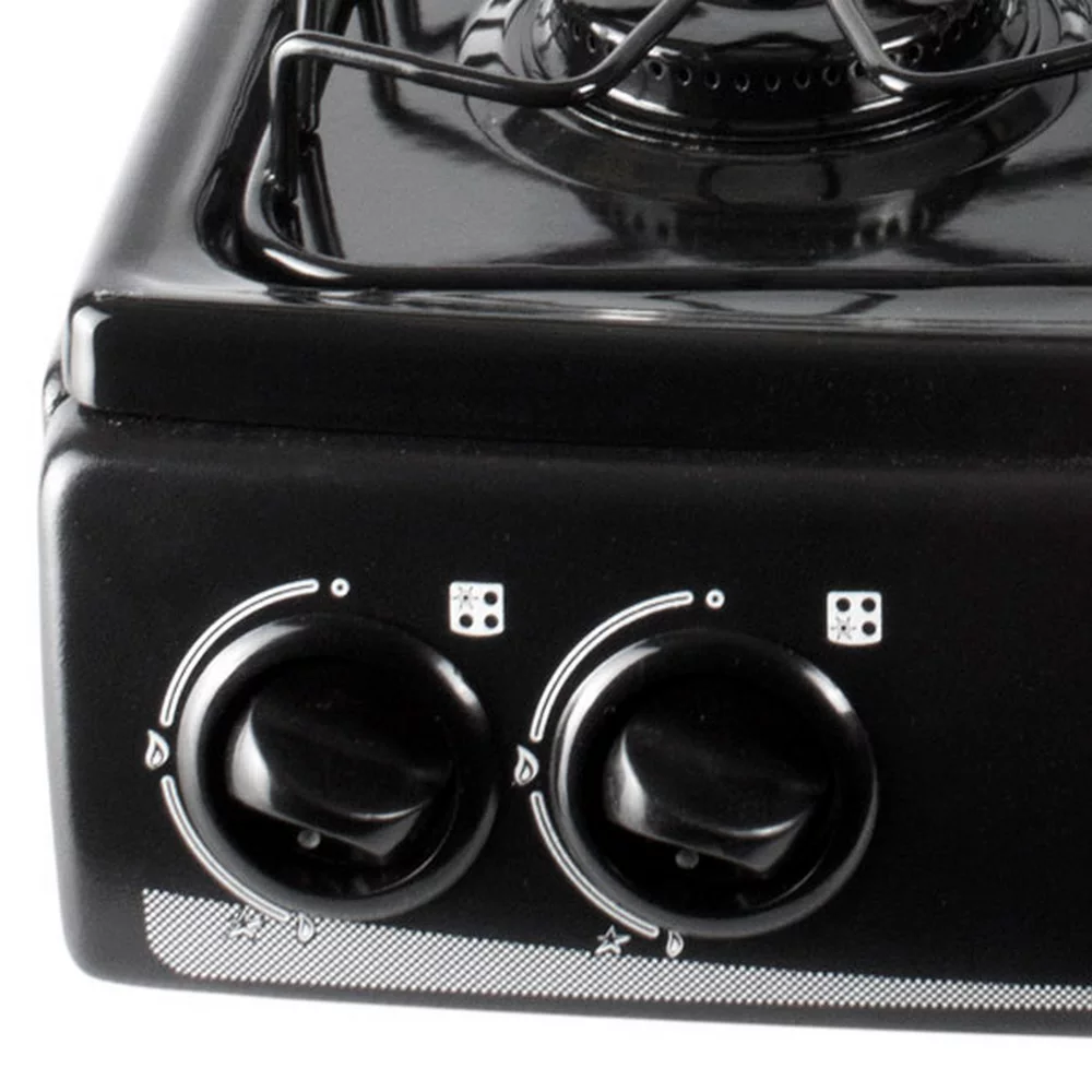 Con 2 quemadores rápidos y 1 ultra rápido, más resistencia eléctrica de 6”, la estufa permite preparar múltiples recetas a la vez. Funciona con gas propano y se conecta fácilmente a tomas eléctricas de 120 V / 60 Hz.
