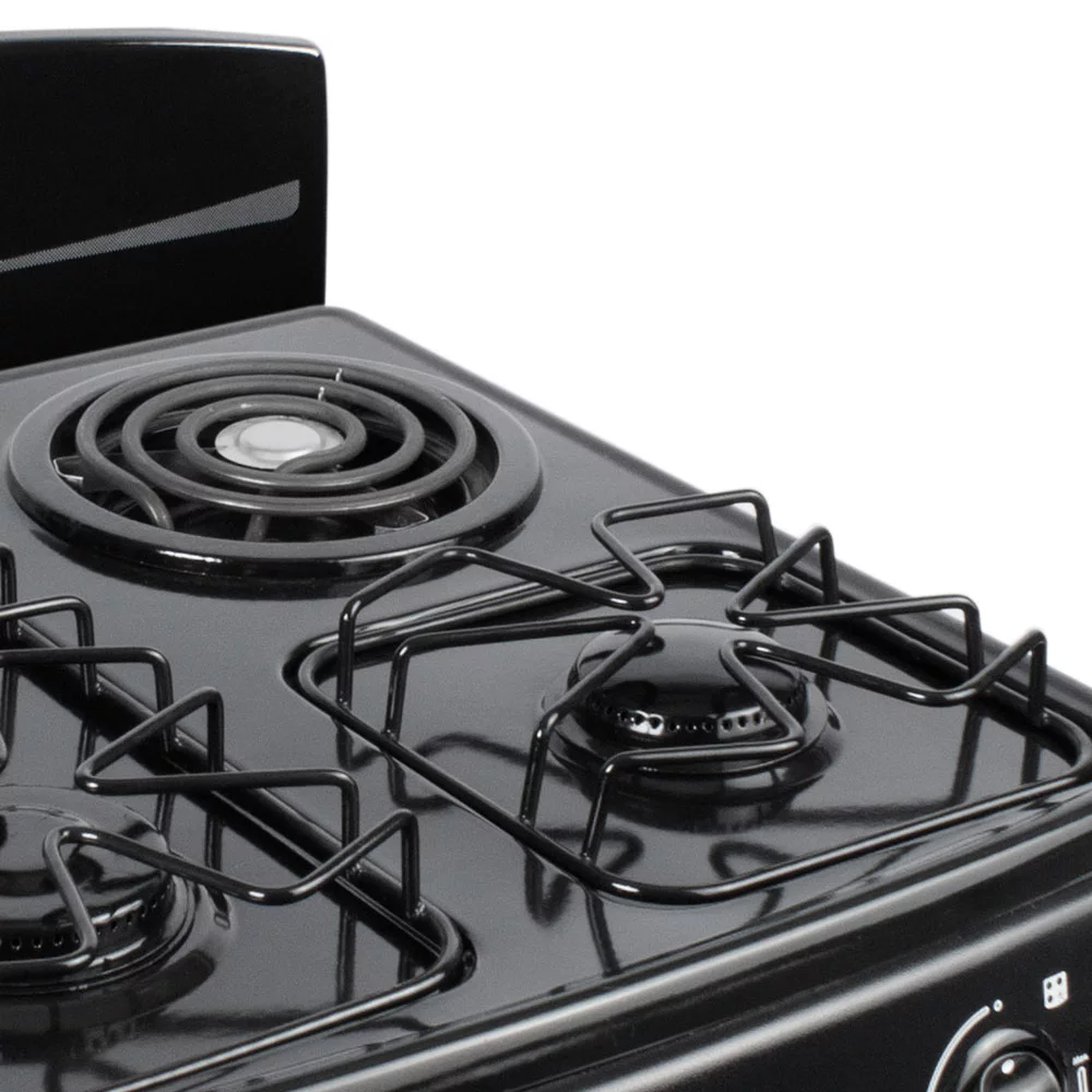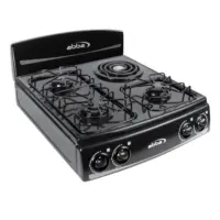 Integra 2 quemadores rápidos y 1 ultra rápido con base en lámina y tapas en acero porcelanizado, todos operados con válvulas de seguridad. La resistencia tubular de 6” funciona con corriente de 120 V / 60 Hz, ideal para situaciones donde el gas no esté disponible.