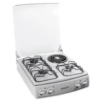 Equipada con quemadores de aluminio y tapas en acero porcelanizado, ofrece excelente durabilidad. Integra una resistencia tubular eléctrica de 6 pulgadas para cocinar sin depender solo del gas. Además, su tapa en vidrio de seguridad protege el área de cocción cuando no se está utilizando.