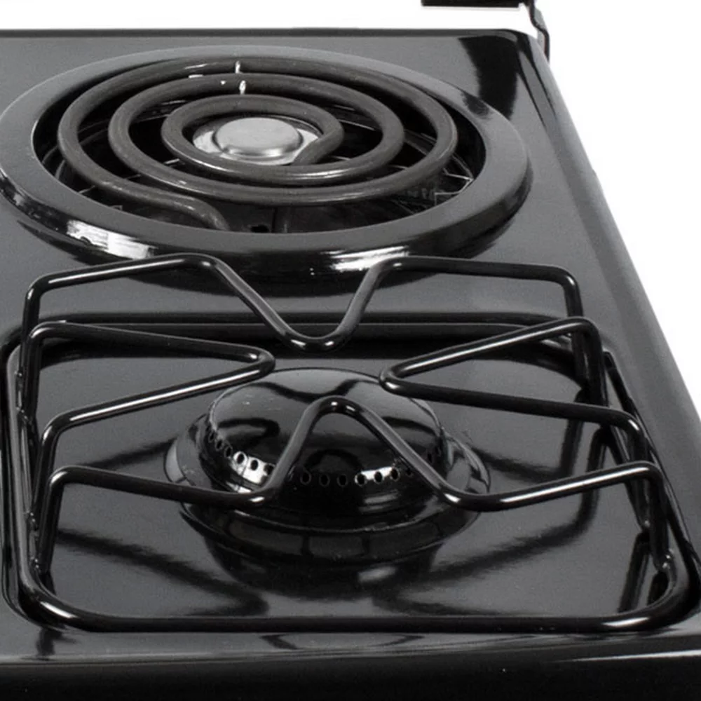 Incorpora una resistencia tubular de 6 pulgadas, ideal para calentar sin necesidad de gas, y una tapa en vidrio de seguridad que mejora la estética y la protección del equipo. Además, sus perillas ergonómicas y el sistema de combustión tipo venturi aseguran un uso cómodo, eficiente y seguro.
