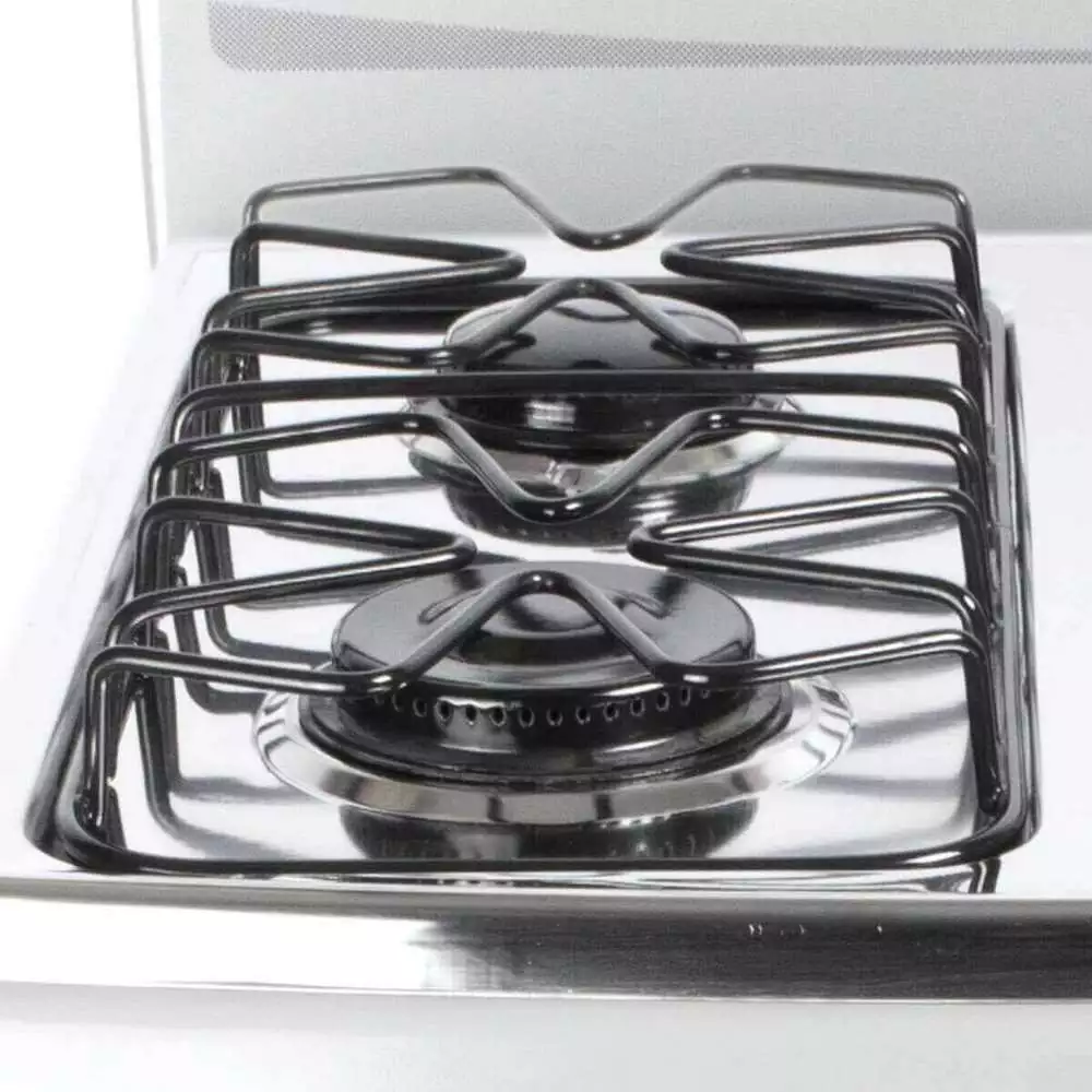 La mesa curva sellada con niveles antiderrame permite mantener la estufa limpia sin esfuerzo. Las dos parrillas dobles en alambrón porcelanizado garantizan estabilidad para tus ollas y sartenes. Los quemadores con base en lámina y tapas en acero porcelanizado, operados por válvulas de seguridad, ofrecen una cocción segura y eficiente.