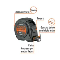 | Características | Carcasa de ABS y cubierta de TPR resistente a impactos. Cinta impresa por ambos lados recubierta de laca para máxima duración de la graduación. Gancho doble con triple imán, facilita la medición por ambos lados. Clip de palanca para mejor sujeción. |