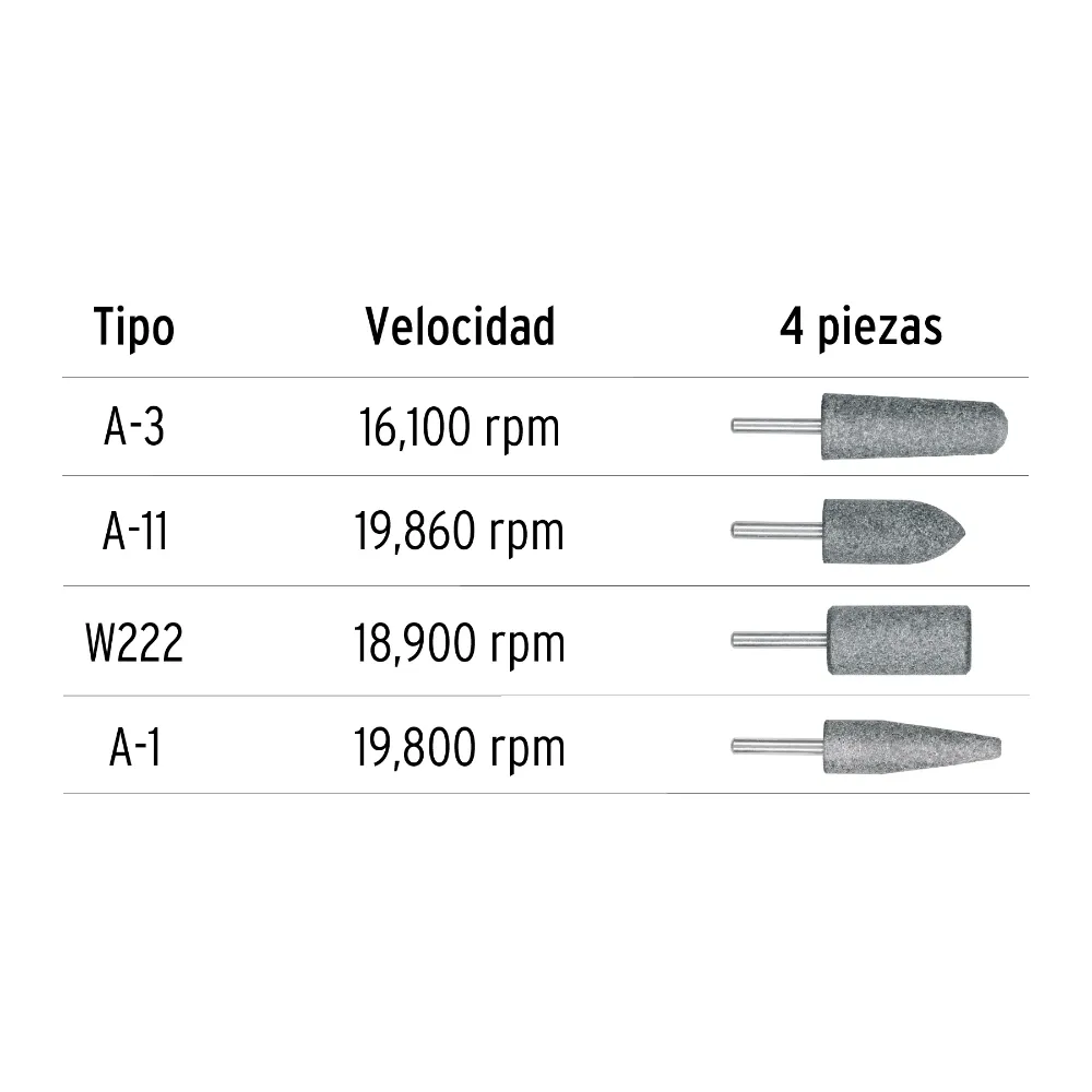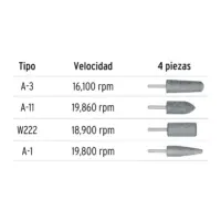 Este completo juego de 4 piezas incluye los tipos A-3, A-11, W222 y A-1, brindándote la versatilidad necesaria para abordar una amplia gama de tareas de mecanizado y acabado con una sola compra.