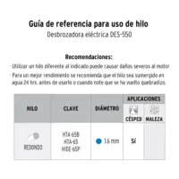 | Características | Motor de 550 W, Eje telescópico de aluminio, Función de desbrozadora y orilladora, Perilla de medio giro para cambiar de orilla a desbrozadora, Pedal de ajuste rápido |