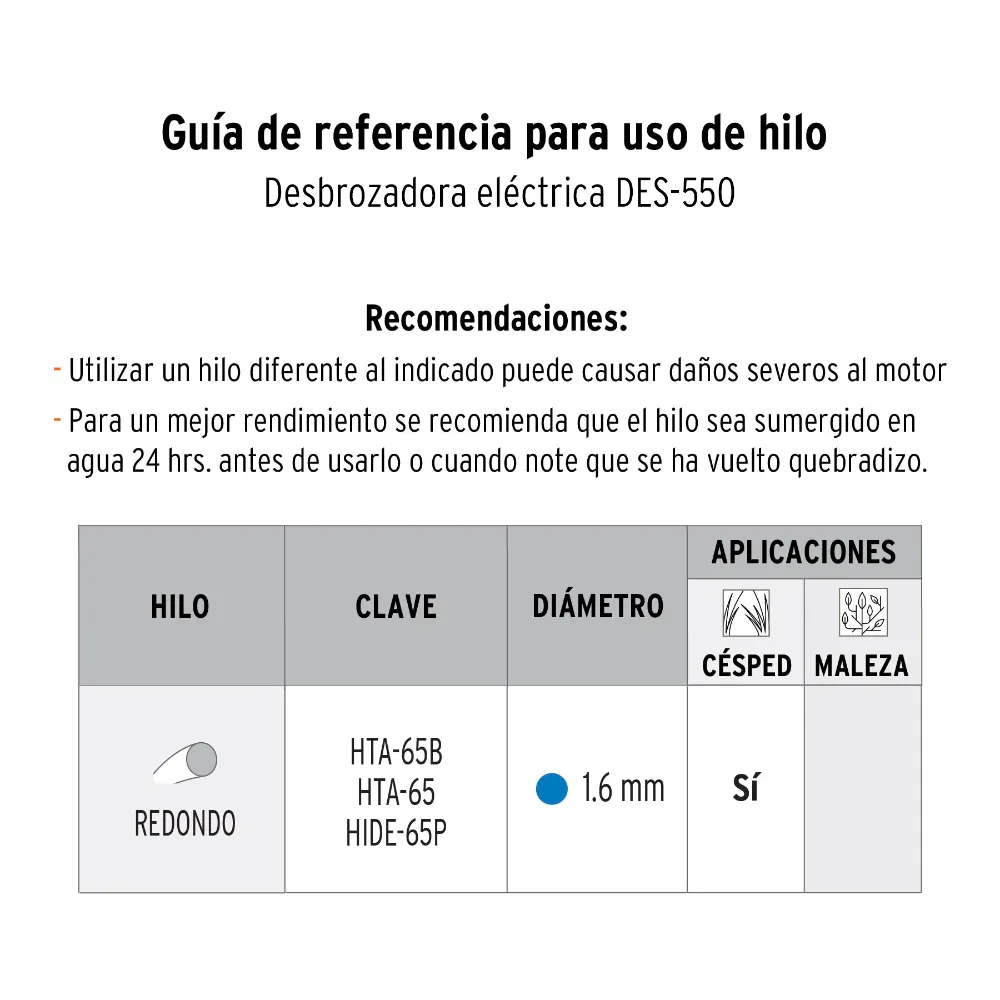 | Máximo diámetro de hilo recomendado | 1.6 mm |