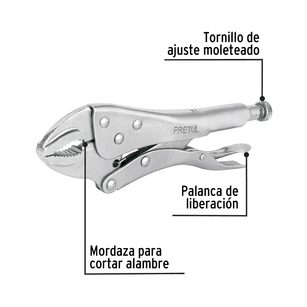 Domina tus proyectos de sujeción con la mordaza curva Pretul, la herramienta profesional diseñada para un agarre imbatible en las aplicaciones más demandantes. Su diseño robusto y funcionalidad superior la convierten en un elemento indispensable para tu caja de herramientas.