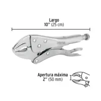 El acabado niquelado no es solo estético; protege la herramienta contra la corrosión y el desgaste, manteniéndola como nueva incluso en entornos de trabajo desafiantes. Su apertura máxima de 2″ (50 mm) y su largo de 10″ (25 cm) la hacen ideal para sujetar con máxima fuerza y torque superficies irregulares, tuberías redondas, pernos, tornillos y tuercas.