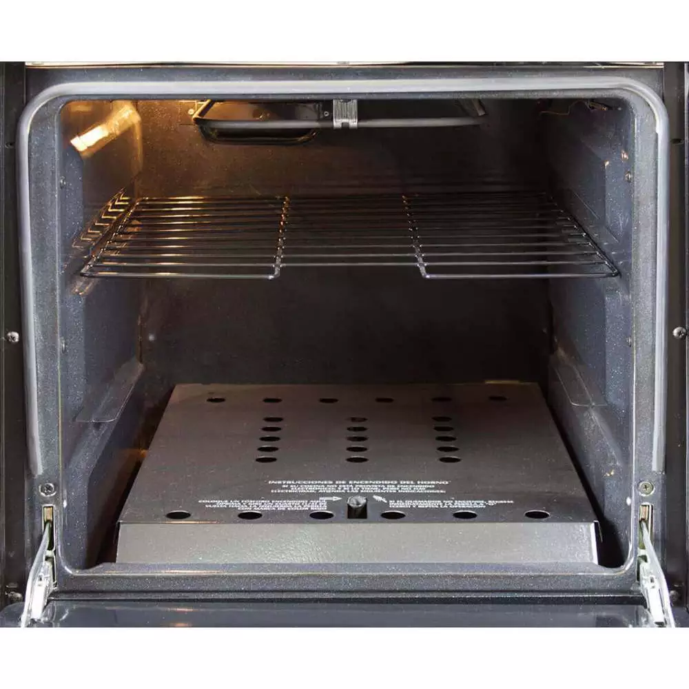 Cuenta con un gratinador eléctrico de 1000W con sensor térmico integrado que evita sobrecalentamientos, y luz interior de 25W para monitorear tus platillos. El interior porcelanizado garantiza distribución uniforme del calor y máxima durabilidad.