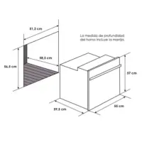 | Características técnicas | Termostato con protección termoeléctrica, interior porcelanizado, botonera plana acero inoxidable, manija imitación cromo, puerta con vidrio panorámico reflectivo de seguridad |
