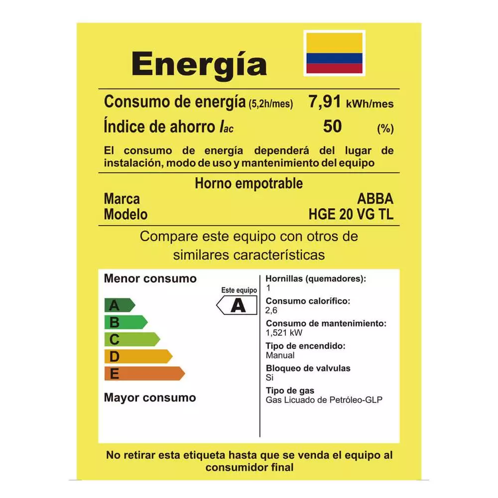| Consumo energético | 7.91 kWh/mes (5.2H/DIA) |