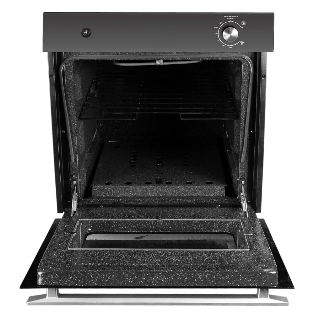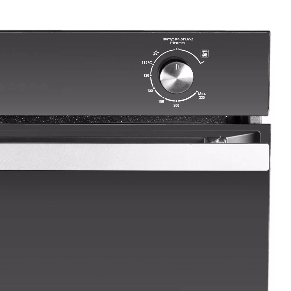 Seguridad y funcionalidad en un solo equipo: cuenta con termostato de seguridad, gratinador eléctrico de 1000W con sensor térmico, encendido automático y luz interior para supervisar la cocción sin necesidad de abrir la puerta. El interior porcelanizado facilita su limpieza.