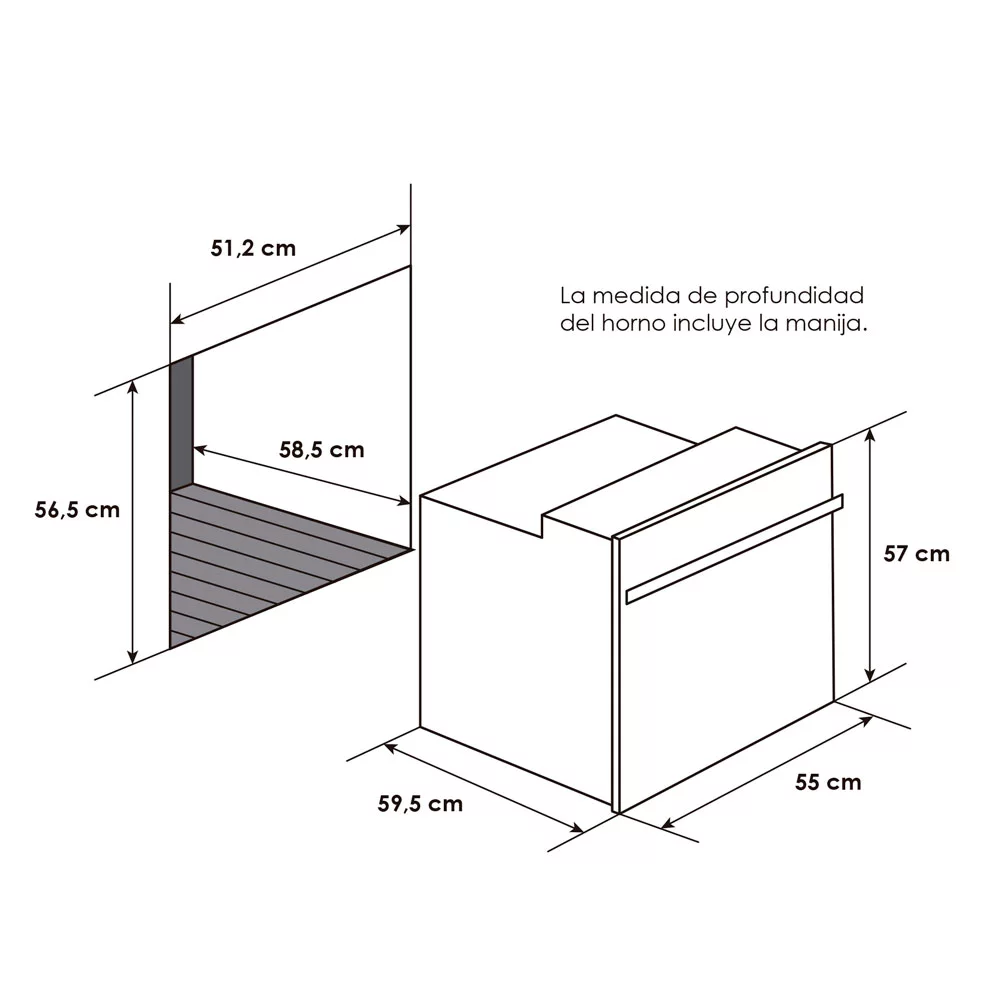 | Medidas de Instalación (Frente x Fondo x Alto) | 51,2 cm x 58,5 cm x 56,5 cm |