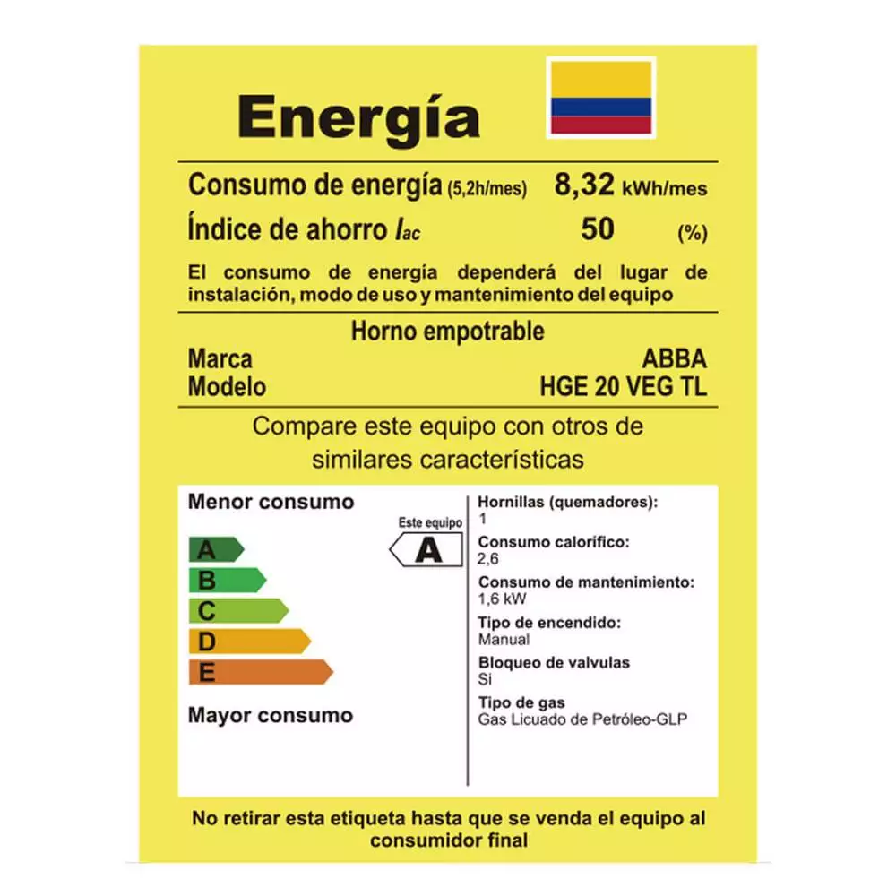 Clasificación energética A con consumo optimizado (8.32 kWh/mes). Dimensiones compactas (55×59.5×57 cm) ideales para espacios reducidos. Incluye parrilla porcelanizada y garantía de 12 meses.