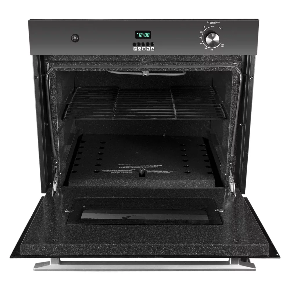 Equipado con gratinador eléctrico de 1000W con sensor térmico y timer digital multifunción (reloj, control de gratinado y alarma). Sistema a gas con termostato preciso y encendido automático para máxima comodidad.