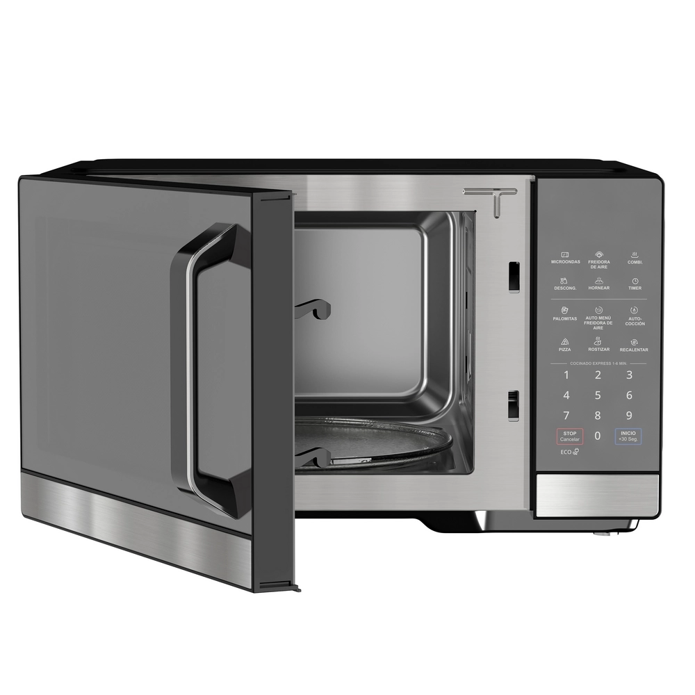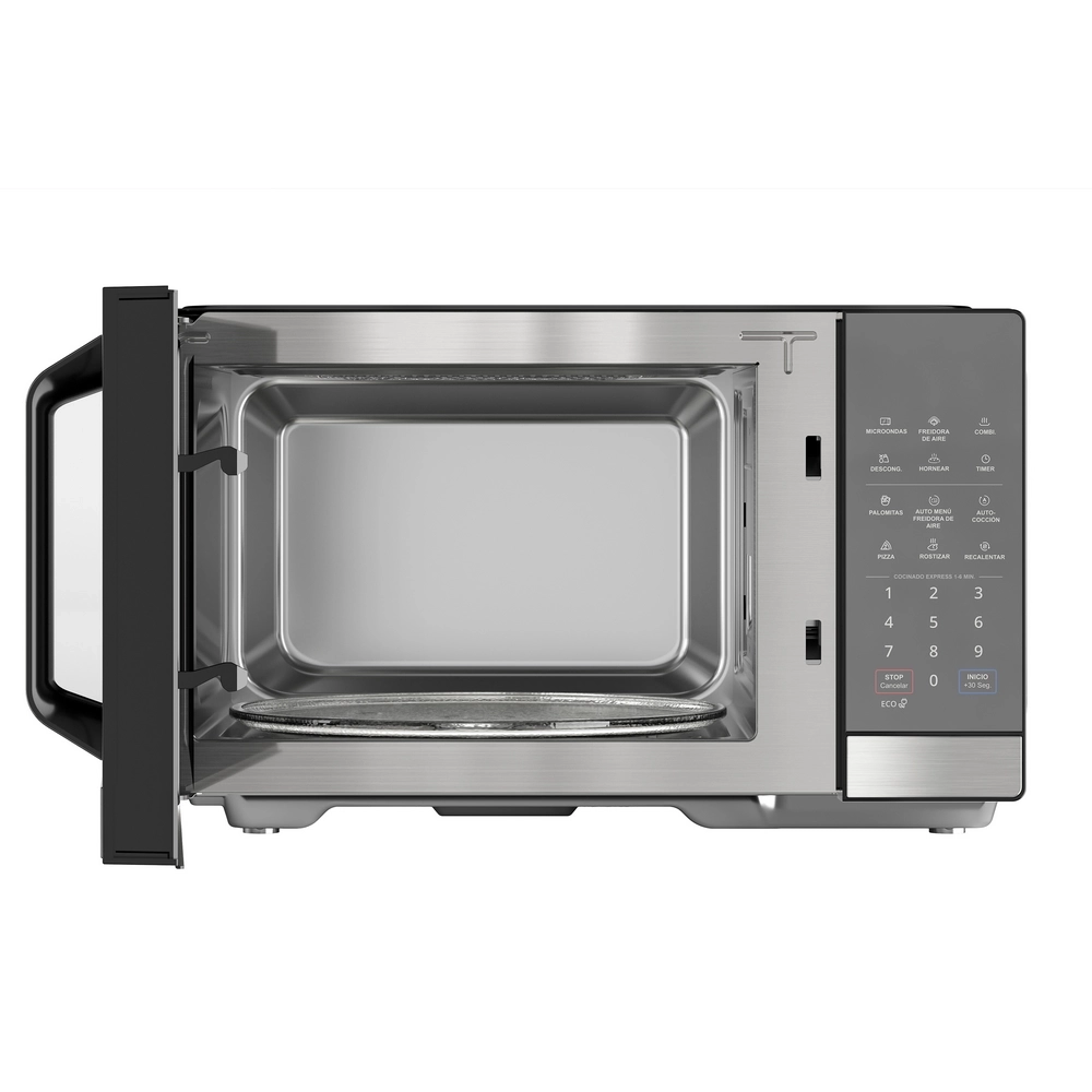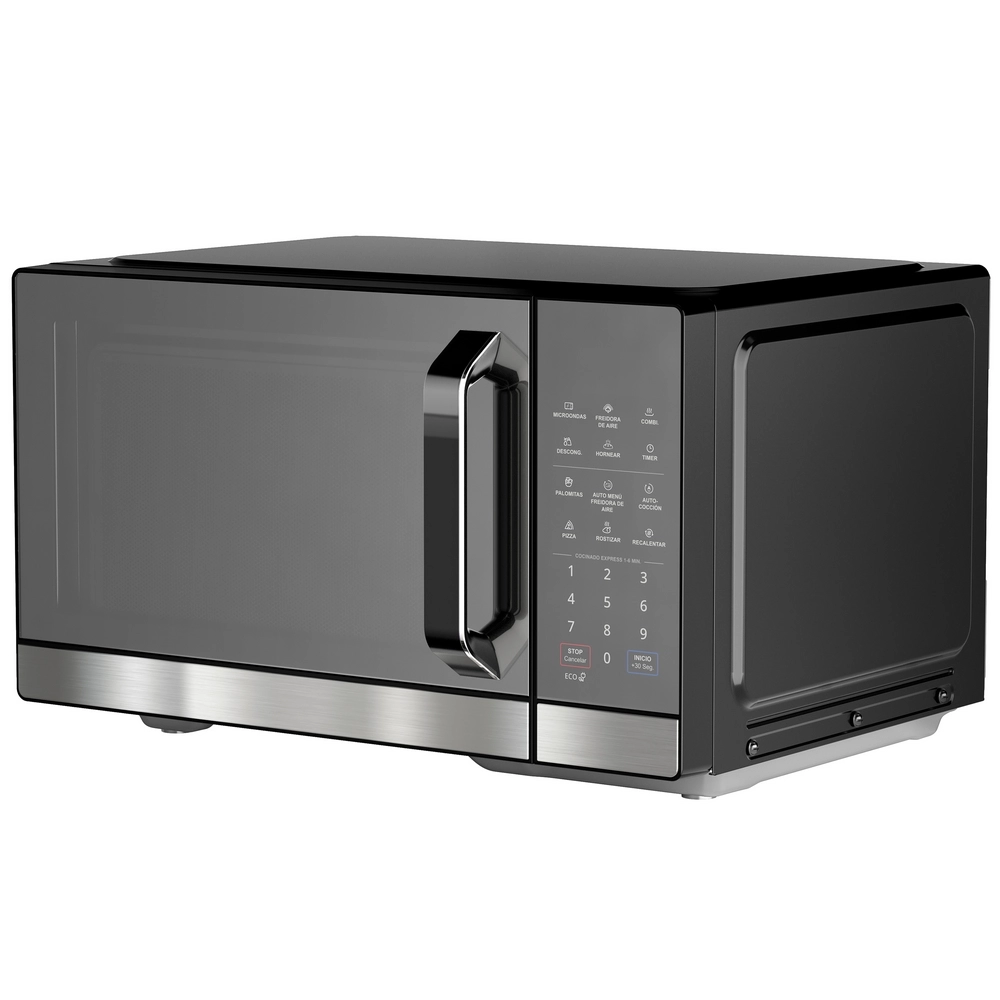• Horno microondas 3 en 1: combina funciones de microondas, freidora de aire y grill en un solo equipo.