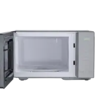 • Horno microondas de 1.1 pies cúbicos (30L) con elegante diseño en color gris y puerta espejo con manija plateada.