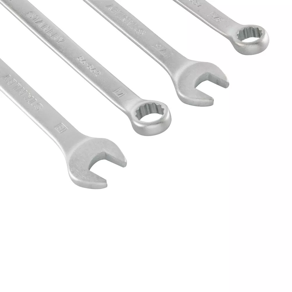 El Juego de 20 Llaves Combinadas Stanley es esencial para mecánicos y técnicos. Con extremo abierto y cerrado, cubre medidas métricas y pulgadas para todo tipo de trabajos.