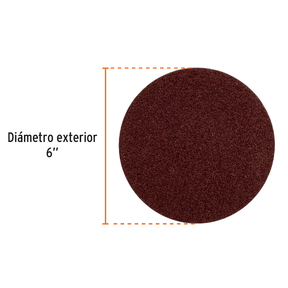 El paquete incluye 3 unidades de discos con un diámetro de 6″ (15 cm) y un grano 60, ideal para trabajos de desbaste y eliminación de material de mediana a alta intensidad.