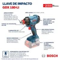 | Contenido del paquete | 1 Llave Impacto GDX 180-LI |