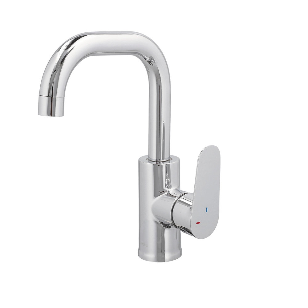 La grifería Valenza en acabado cromo combina elegancia y funcionalidad. Su diseño monocontrol de 90° permite un ajuste preciso de la temperatura del agua, ideal para baños modernos.