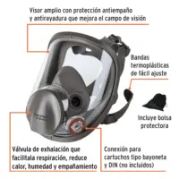 Protección superior y comodidad excepcional para entornos laborales desafiantes. Esta máscara facial completa está diseñada para brindar seguridad respiratoria contra partículas, gases y vapores, permitiéndote trabajar con total confianza.