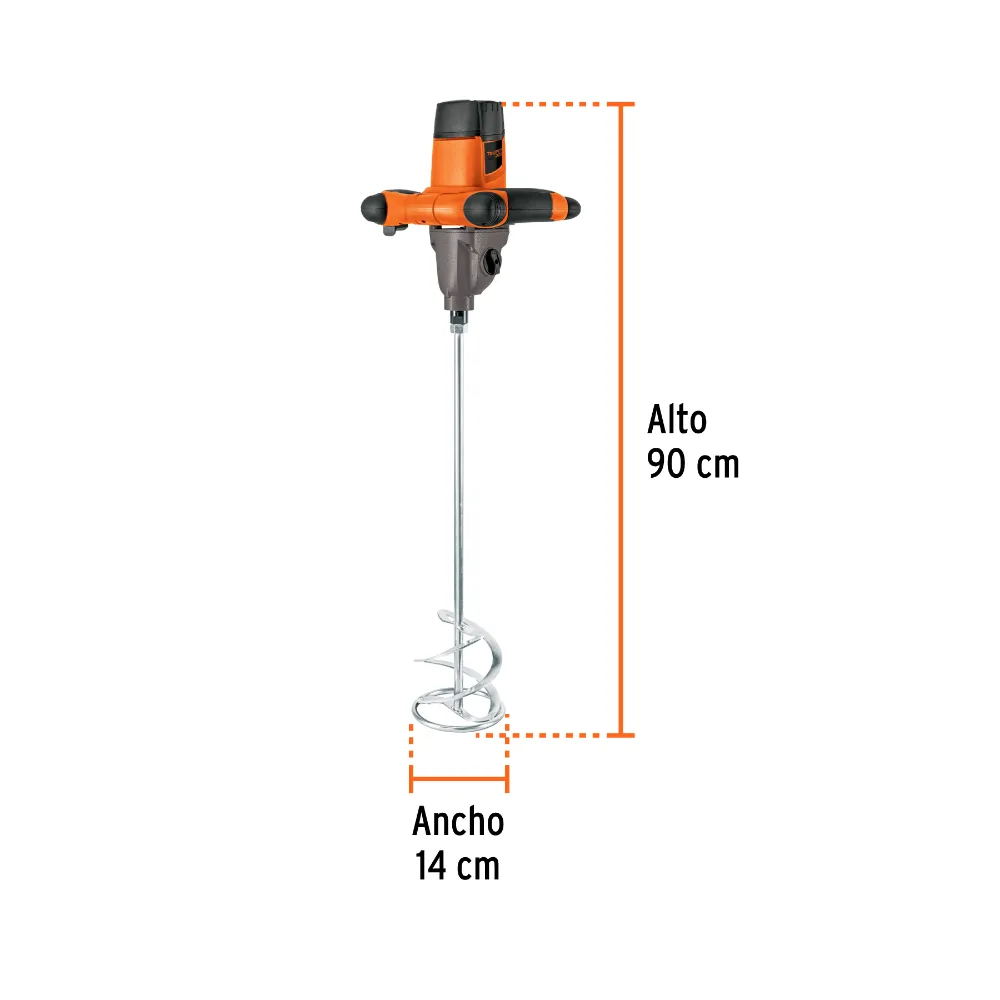Su motor de 1400 W montado sobre balero de bolas garantiza una larga vida útil y un desempeño excepcional. Elige entre dos velocidades mecánicas y aprovecha la función de velocidad variable para un control preciso de la consistencia de tus mezclas, desde mortero hasta concreto.