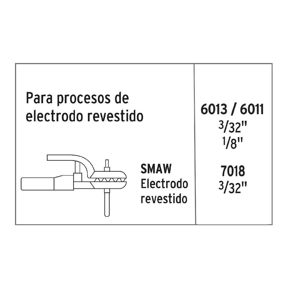 | Tipos de electrodo | 6013, 6011 y 7018 |