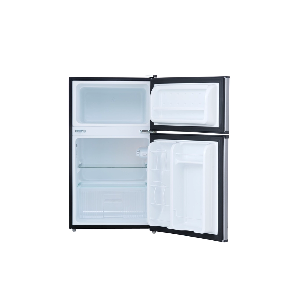 Mantén tus alimentos y bebidas siempre frescos con estilo y máxima eficiencia. Este minibar de 87L, con su elegante acabado plateado, es la solución perfecta para cualquier espacio de tu hogar, oficina u hotel, combinando capacidad inteligente y un diseño moderno.