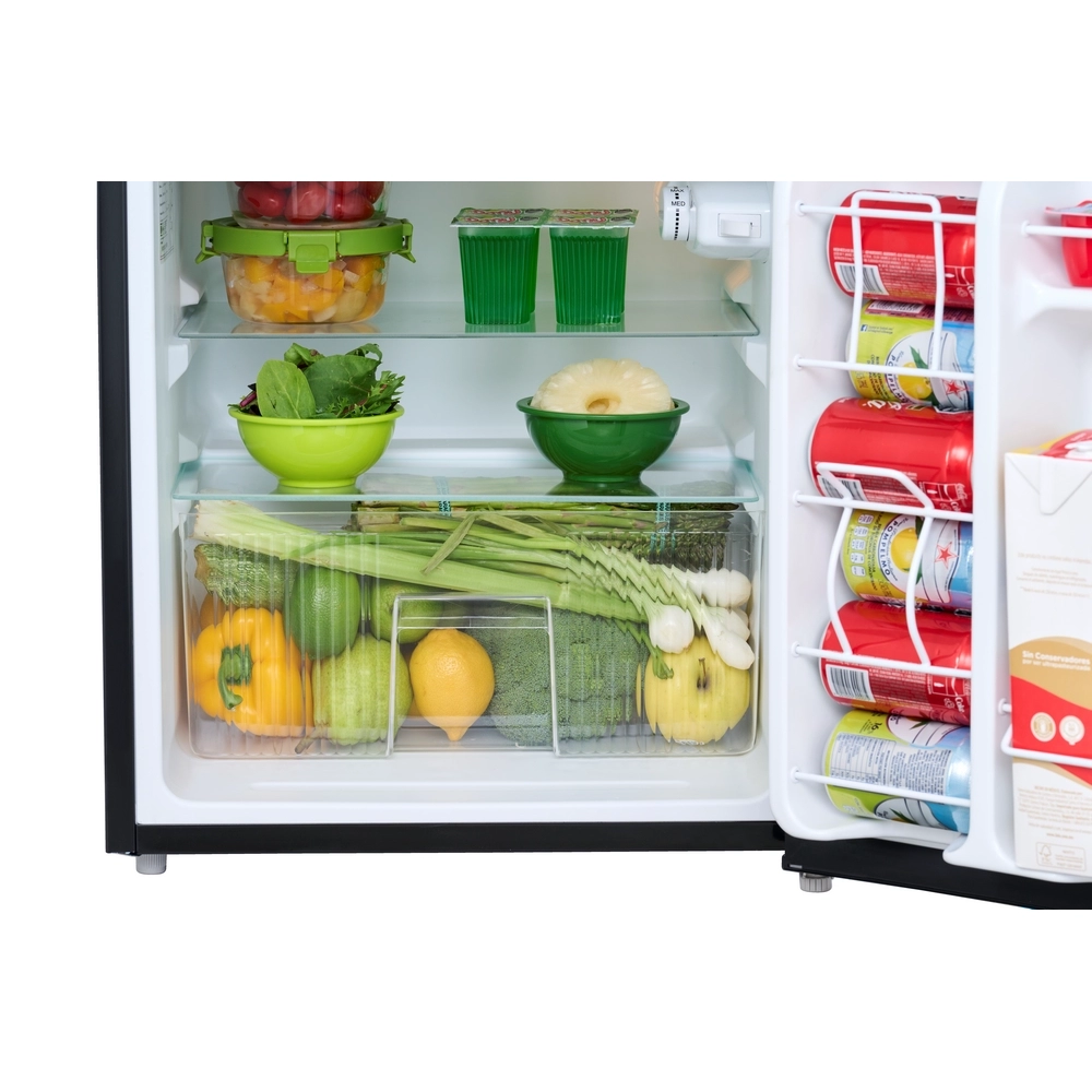 Cuenta con puerta reversible para adaptarse a tu espacio y puertas con llave de seguridad, ideal para evitar accesos no deseados. Su organización interior incluye anaquel para botellas, dispensador de latas y accesorios prácticos como huevera y bandeja de hielos.