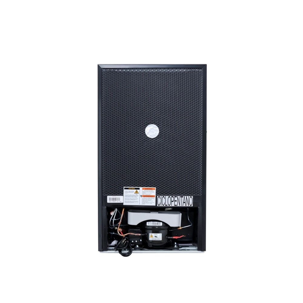 Equipado con un compresor de alto rendimiento que utiliza gas R600a ecológico, siendo amigable con el medio ambiente. Las patas niveladoras frontales aseguran una instalación estable en cualquier superficie.