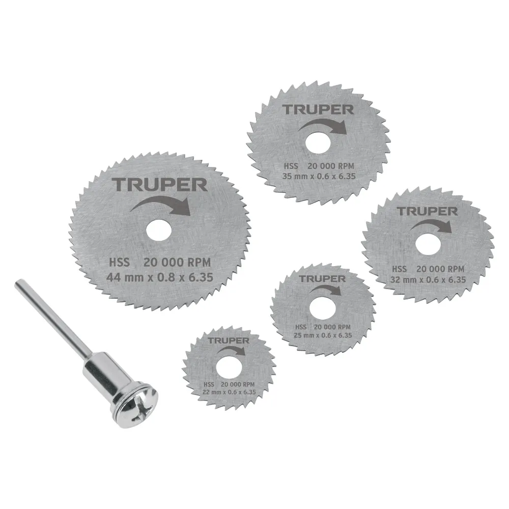 Incluye 6 discos de 7/8″ (22 mm) con 36 dientes cada uno, proporcionando el equilibrio perfecto entre corte agresivo y acabado fino. Descubre más herramientas de calidad en nuestra gama de productos Truper. Para consultar las especificaciones técnicas completas, visita la ficha técnica del fabricante.