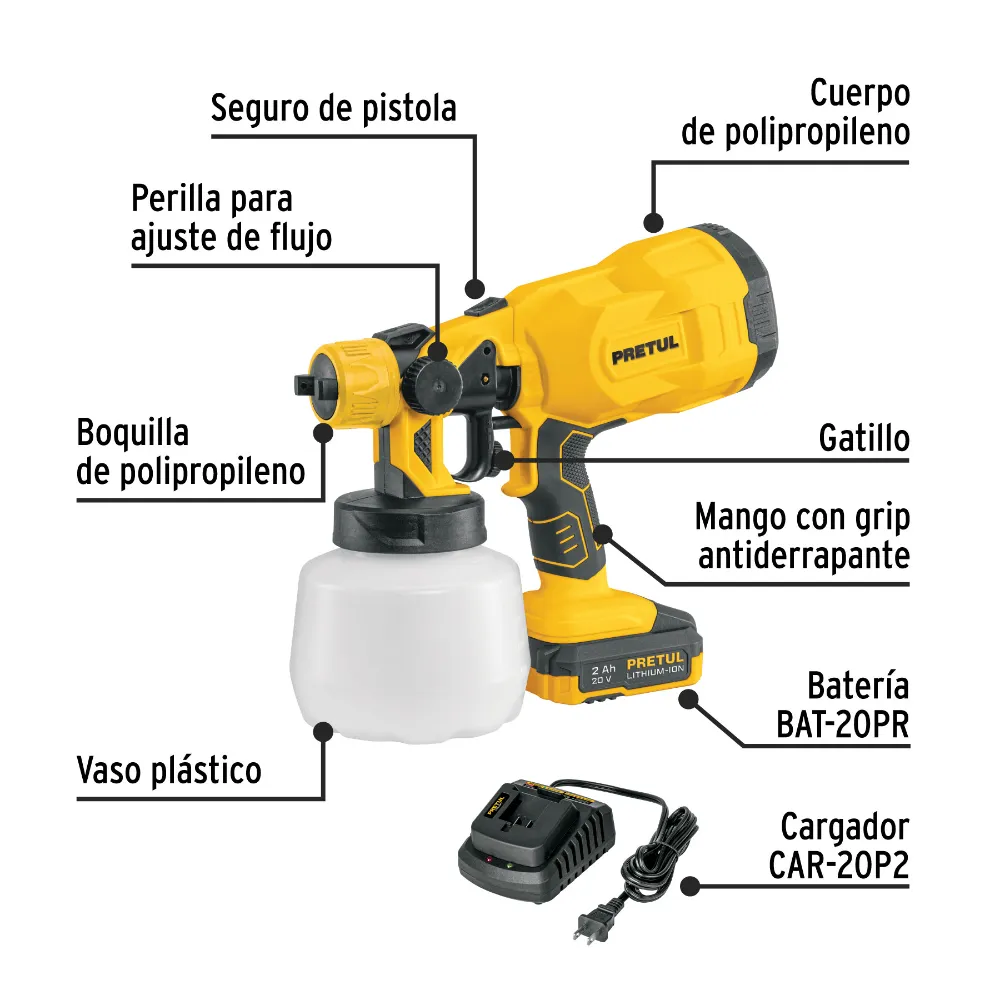 Tienda > Pistola Para Pintar 20V + 1 Batería 2Ah Pretul 29010