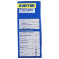 La pistola para pintar Surtek de baja presión es la solución profesional para quienes buscan precisión y eficiencia en sus trabajos de pintura. Gracias a su presión de trabajo de 45 psi, ofrece un control excepcional, lo que la hace ideal para retoques detallados y acabados perfectos. Además, su vaso de 1 litro permite trabajar de forma continua sin interrupciones frecuentes.