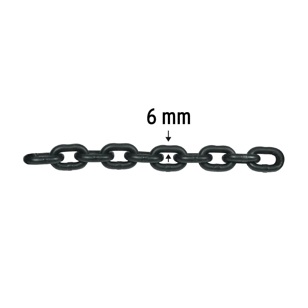 Diseñado para el trabajo duro, cuenta con una cadena de 3.2 metros de largo que ofrece un levantamiento estándar de 3 metros, proporcionando la versatilidad que necesitas. Su construcción robusta garantiza durabilidad y rendimiento constante, haciéndolo una herramienta indispensable.