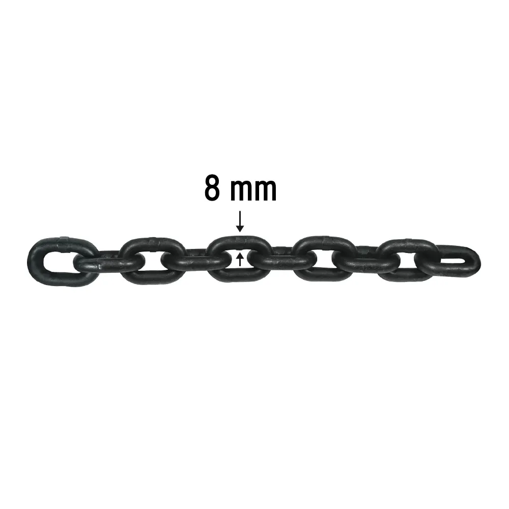 | Materiales | Cadena de acero al manganeso, ganchos de acero al cromo |