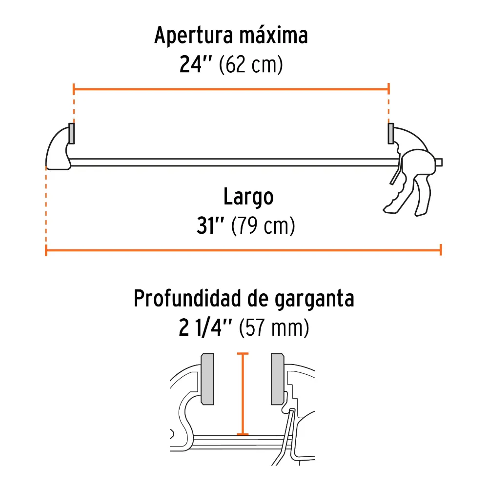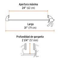 • Prensa con ajuste rápido de 24″ (cuerpo de nylon y barra de acero)