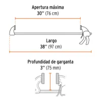 Su palanca de liberación rápida te permite ajustar y soltar la presión al instante, agilizando cualquier tarea. Las almohadillas de silicón removibles protegen tus piezas de trabajo, evitando marcas y maltratos durante el proceso. Con una apertura máxima de 30″ (76 cm), es ideal para sujetar una amplia variedad de objetos de gran tamaño.