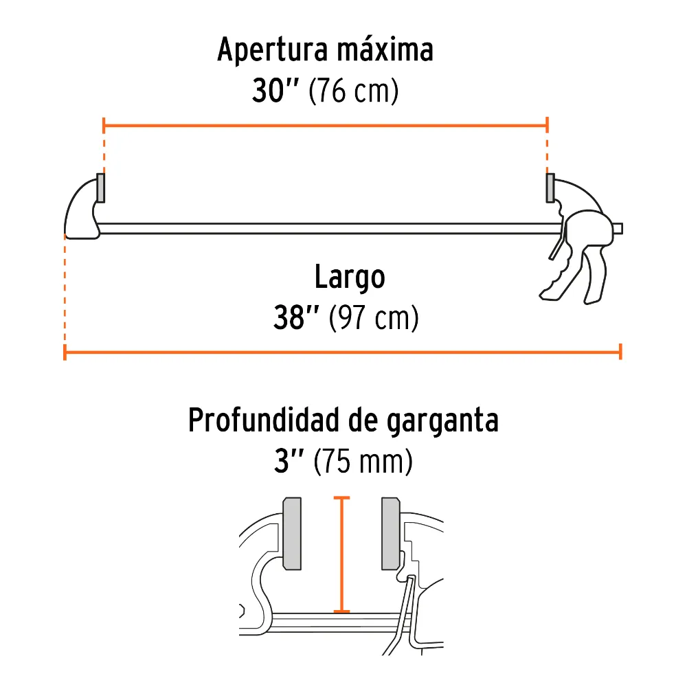 Fabricada con un cuerpo de nylon de alta resistencia y una barra de acero, esta prensa está construida para el uso rudo diario. Ofrece una capacidad de presión de 165 kg y una profundidad de garganta de 3″ (75 mm), garantizando sujeción firme y estable en cada uso.