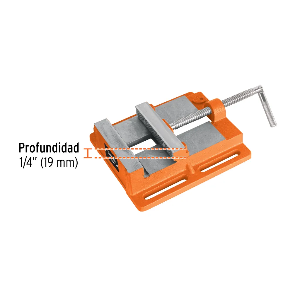 Fabricada con un cuerpo de hierro gris y mordazas estriadas de acero forjado, garantiza un agarre antideslizante y extremadamente resistente. Su apertura máxima de 6″ (150 mm) te permite sujetar una amplia variedad de piezas para operaciones como taladrar, roscar, rectificar, fresar y avellanar con total seguridad.